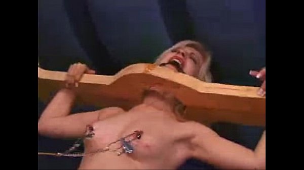 Blonde in back arch upside down bondage 5 min