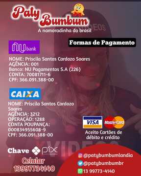 Oi sou Paty Bumbum se quiser me achar me procura nas redes sociais . Sou bi e adoro fazer travessuras com minha buceta .