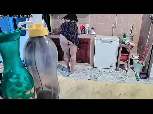 Esposa gorda en la cocina